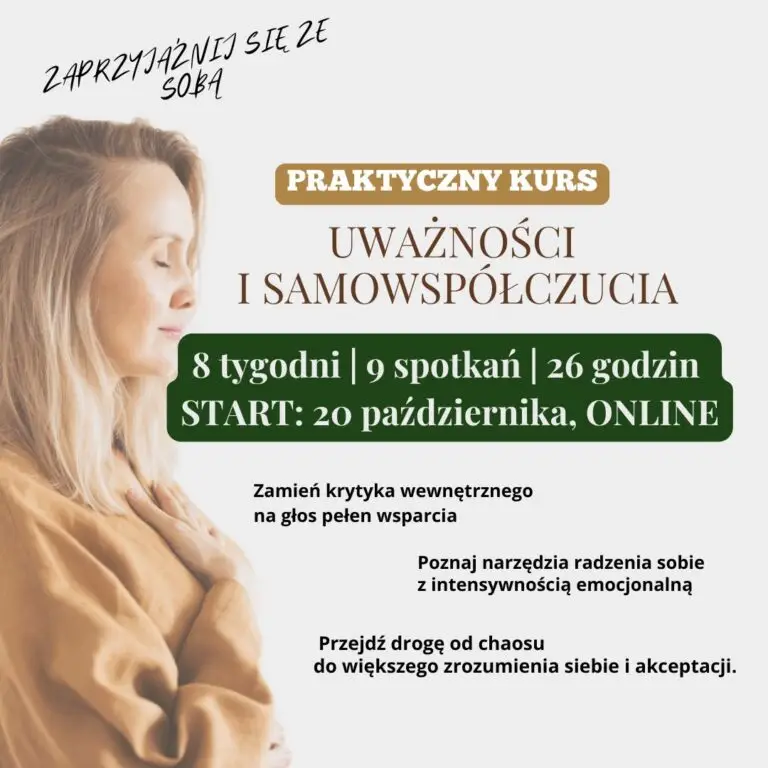 Współczucie dla siebie to też odwaga zanurzenia się we własnym doświadczeniu, nierzadko bycia w dyskomforcie. To decyzja, aby wszystko, niezależnie od treści doświadczenia przyjmować z życzliwością i zrozumieniem dla ludzkiej kondycji.